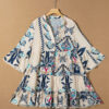 White Printed Tribal Print Bracelet Sleeve Buttoned Mini Dress