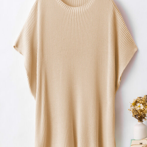 Apricot Short Sleeve Side Slit Oversized Sweater